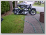 The Brilliant Black bike runs and drives great and displays even better. The bike is comprised of many original HD parts including the frame & matching case numbers. Foot clutch and hand shift with gate works smooth. Kick start with manual advance, starts very easy-cold or hot. 6 volt system with new Harley battery, includes 6 volt trickle charger. Lots of chrome and a Linkert carb with j slot air cleaner cover. Bike will come with a clear HD title and a reprint copy of service manual for 1940-1947 Knucklehead,